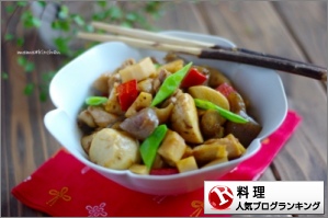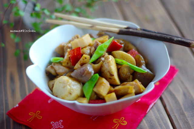 ④蓋を開け、Bを加える。強火にして菜箸で混ぜながら照りが出るまで炒める。器に盛り、刻んだ絹さやを飾る。