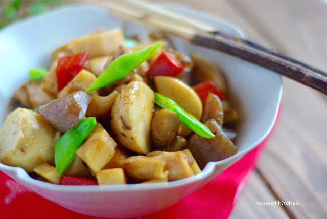☆Bを加える前にまだ固い具材があれば、水を50mlほど加えてもうしばらく煮ます。具材に箸がささるようになったら、Bを加えます。