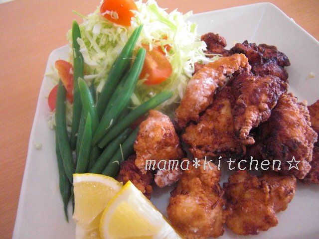 Papaがお気に入りの唐揚げで、本日のランチ。