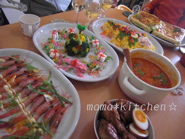クリスマスイヴですねぇ・・・ヾ(o・∀・o)ノ゙いかがお過ごしですか?! 本日は、お友達を呼んで我が家でクリスマスPartyをしました☆まずは、乾杯~~~♪そして本日のParty Menuたち♪です。
