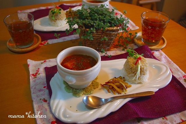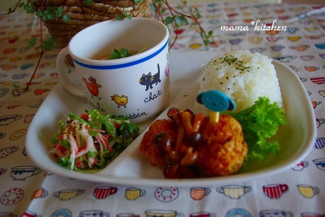 2009-10-24 19:37:21 Key&Cocco チキンボールのランチ* こんばんはー(✿◡‿◡ฺ)♡なんか、このコーナー・・・とんとお久しぶりちゃいます?笑。子どもに、ご飯与えてないってぇ事はないんですよぉ~~~(。-∀-)作り置きしておいた鶏団子を使って、簡単ランチ*先日届いた、かな姐さん賞の賞品とサッと煮込んで・・・♪えっとねぇ