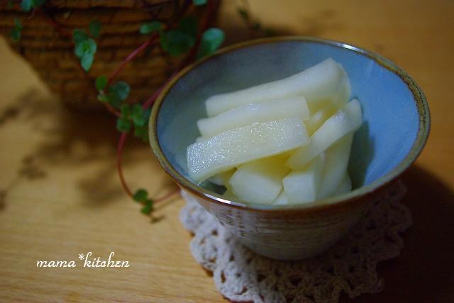 2009-10-28 10:02:51 これ美味しいよ~!柚子胡椒風味* うちの大根のさっぱり漬け ■レシピ■ おはようさんです♪ぱりぱり食べだしたら止まらない~っっ!我が家の「柚子胡椒風味*大根のさっぱり漬け」です。和風マリネっぽい感じです。■柚子胡椒風味*大根のさっぱり漬け■大根・・・250gお塩・・・小さじ1/2☆酢・・・大さじ2☆お水・・・大さじ1☆お砂糖・・・小さじ