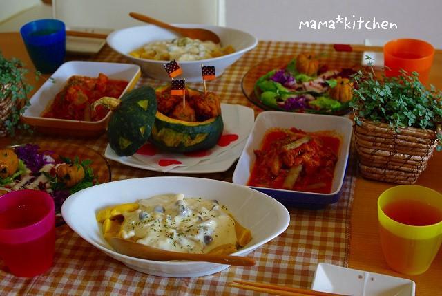 2009-10-31 20:15:04 小さなおばけが大騒ぎ♪うちのハロウィンParty☆ こんばんは*今日は、ハロウィン♪ランチタイムに、大人4名・子ども4名・・・で小さなPartyのスタートですっ☆まず、今日のお料理MENU*テーブルの真ん中に、どーーーんと鎮座するジャック・オー・ランタン。こちら・・・かぼちゃと合挽きミンチを使ったミートボール♪この、オレ