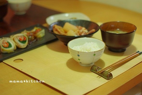 2011-1-28 09:11:27 彩り野菜と豚肉のさっと煮と、懐かしい旨煮 おはようございます^^今日も、和食。。お夕飯です。白菜に、ほうれん草や人参、豚肉をくるくる巻いてサッと煮込みました!最後に、煮汁に水溶き片栗粉を加えてとろみを付けて♪カットした煮物に、とろ~りかけて完成です!見た目がとにかくキレイ^^盛り付け時にカットし