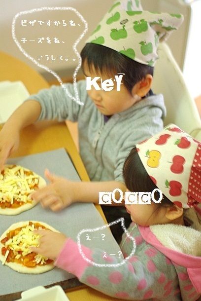 2011-1-18 14:00:57 ピザ屋さんごっこ こんにちは♪この前のお休みの時に、寒いので外に出られないので。。。ちょっと出たけど(´ε`;)子どもたちと一緒に、ピザを作りました!Keyは完全にスイッチが入って、なにやら先生モード(。-∀-)Coccoは、近頃流行っている・・・「えー?えー?」というセリフで持ち切りで