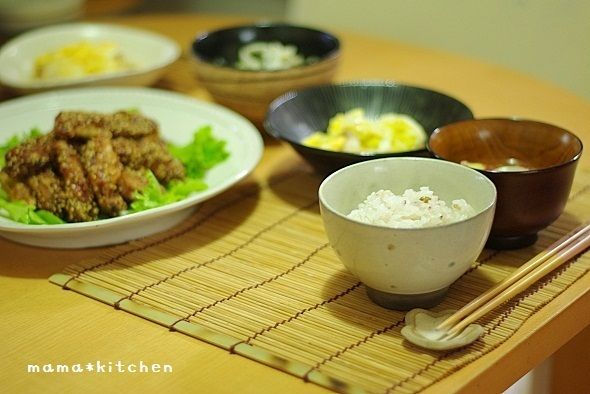 2011-1-23 09:11:23 手羽中の甘辛ゴマ揚げのお夕飯 おはようございます!お夕飯の記事です。今日は、子どもたちも大好きな手羽中の甘辛ゴマ揚げ^^レシピは、以前アップしました~!こちらです。 手羽中の甘辛胡麻揚げ by 長岡 真由そして、大根とワカメの磯マヨサラダ。青のりの香りと、しゃきしゃきの歯ごたえがおいしいで