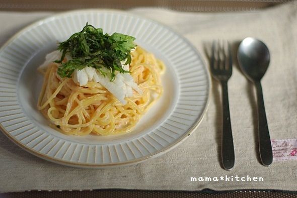 2011-1-24 09:11:21 明太子マヨパスタ♪ とほうれん草のベーコンエピ おはようございます^^いつの日か。。のお昼ごはん♪明太子マヨパスタに、刻んだ長芋と大葉がたっぷり。ちょっと出汁のきいた和風明太子パスタというより、サラダみたいな明太子マヨパスタです^^茹でたパスタを、作っておいた明太子ソースと和えるだけ!ボウルで和えるだ