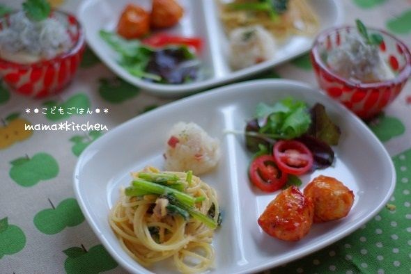 2011-8-19 09:11:03 こどもごはんと、フルーツ好き。 おはようございます~!暑いですねぇ、毎日(。-∀-)今日は久しぶりに、こどもごはんです~!色々使ってしまいたい食材があった・・・色々盛りランチ♪ほうれん草たっぷりの、たらこパスタ!これは茹でて和えるのみ。ボウルにたらこと白醤油、少量のマヨネーズを合わせておいた