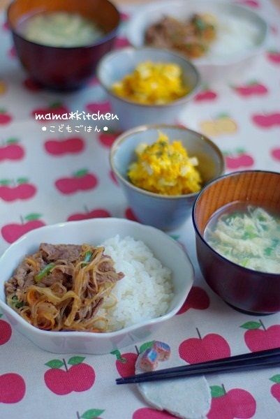 2011-8-23 09:11:17 牛肉と春雨の甘辛中華炒めの、こどもごはん おはようございます~^^お夕飯です。この日のメインは、牛肉と春雨の甘辛中華炒め!旨味を吸った春雨が、食欲をアップさせてしまいます(。-∀-)お野菜も、人参と玉ねぎ、ピーマンが入ってますよ^^レシピはこちらです。コチュジャンも入ってますが、少量ですので我が家の子