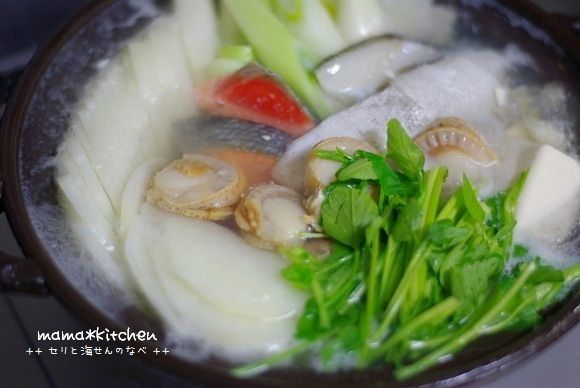 2012-2-27 09:11:48 セリと海鮮のお鍋、ガーリックフランスを焼く おはようございます~!金曜日、ちょっぴりあたたかかったので油断してたら・・・週末、恐ろしく寒かったです~(´゜д゜`)やっぱりまだまだお鍋で乗り切らねば!!という感じですね^^そんなこの日は、春のお野菜セリをたっぷり入れた海鮮鍋!!我が家では、ホタテが人気
