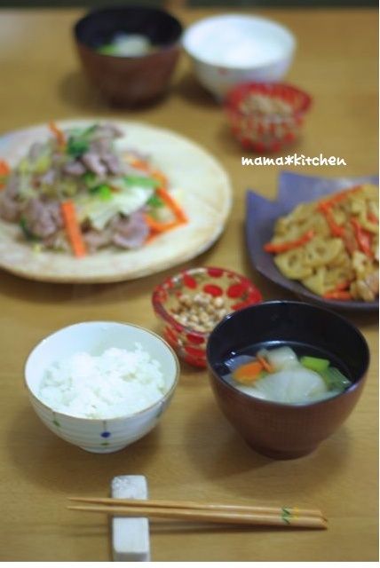 2012-12-13 09:11:31 肉野菜炒めのお夕飯と、中華豚丼のお昼ご飯。 おはようございます~♪毎日寒いですね、毛布が気持ち良くて朝起きるのが億劫です( ;∀;)肉野菜炒めの簡単お夕飯です。蓮根の金平ってパリパリしてておいしいですよねぇ♪うちの家族の大好物です。こちらは、お休みの日のお昼ご飯。薄切りの豚で、酢豚のような味付けにし