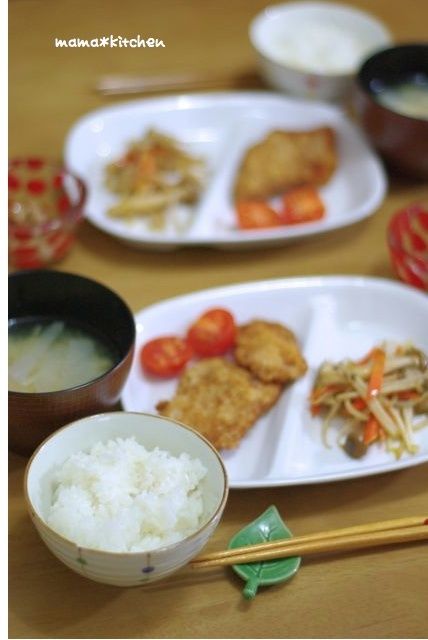 2013-1-7 09:11:09 豚ヒレカツのお夕飯と、今朝は七草粥。 おはようございます~^^お正月休みもそろそろおわり。。。今日は七日!早いもんです( ゚∀゚)さてさて、久しぶりに自宅でのごはん。何にしよー・・・というか、冷蔵庫になにもないじゃない~(。-∀-)で、トンカツです。きのこを入れた野菜炒めと。。。納豆と、大根のお味噌汁