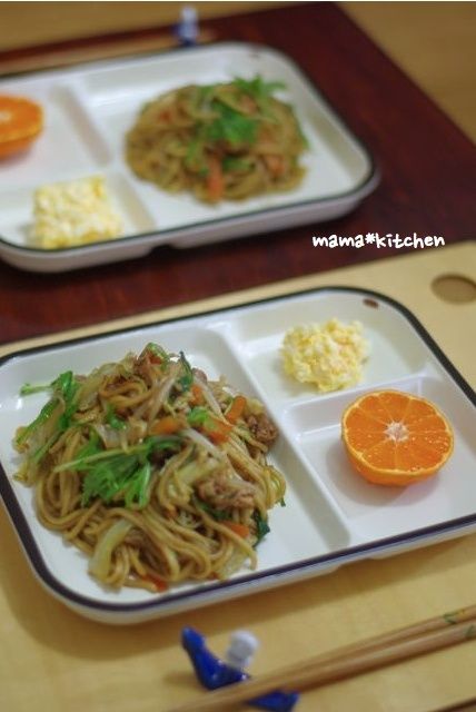 2013-1-14 09:11:50 ソース焼そばと、豚肉と水菜の塩焼そば。お休みごはん。 おはようございます~♪連休ですね、いかがお過ごしでしょうか^^お休みは、のーんびりしたいっ!です(*´∀`*)ので、お昼ごはんは焼そばにしました。子どもたちは、ソース味のものだけを「焼そば」だと思ってる節があるので。。(;・∀・)期待に応えてソース焼そばを。たま