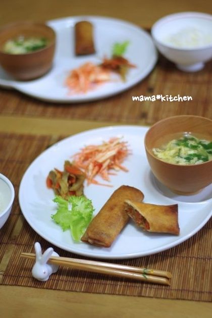 2013-1-16 09:11:52 春巻きのお夕飯と、手作りおやつ。 おはようございます~!寒い日が続いてますね( ;∀;)昨日のお夕飯は、久しぶりに春巻き♪春雨とキャベツの入った、春巻きです。レシピはこちら~。 刻んだ豚バラで♪ジュワ~っと美味しい春巻き by Mayu*タケノコがなかったので、代わりにはならないけど。。。人参をいれ