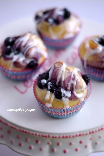 2013-1-24 09:11:13 ブルーベリーのヨーグルトブレッドと、きなこ山食で朝ごはん。 おはようございます~!寒いですね(●´∀`)おやつ用に、ヨーグルト入りの生地を作って焼きました。ブルーベリーたっぷりで^^仕上げにグレーズ。可愛いおやつパンの出来上がり~♪生地がもちもちしてて、適当に作ったわりにはおいしかったです。笑そして、きなこ入りの