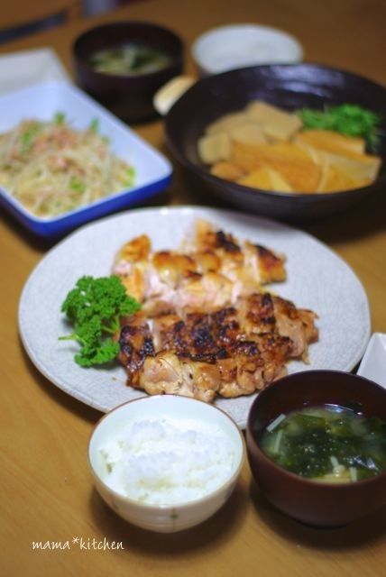 2014-2-24 09:11:54 焼鳥と含め煮。スピログラフ。 おはようございます~!お休みは、ゆっくり過ごしました^^ その割には、あっというまに終わってしまった気がします(。-_-。)鶏肉食べたい!!という気分だった息子氏のリクエストで。。焼鳥!!グリルでこんがり焼きました♪手前がもも肉。ある程度焼いてから、仕上げにみり