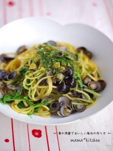 2014-2-18 09:11:07 青の洞窟で、しじみと水菜の和風ペペロンチーニ おはようございます^^青の洞窟シリーズで、「おいしい毎日の作り方」今回は、ペペロンチーニをアップしました。あっさりシンプルなパスタに、ガツンとしじみの旨味をプラス♡しゃきしゃきの水菜とも、相性抜群です~!是非、お試し下さい。良かったら、こちらのHPにも遊び