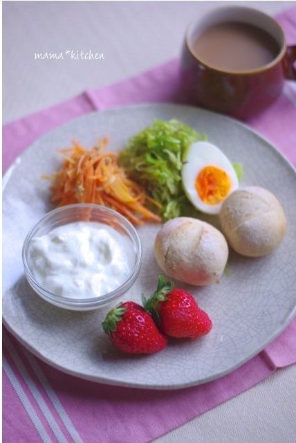 2014-2-11 09:11:15 パンが焼けたら、朝ごはん♪ おはようございます~!祝日ですね^^いつの日の朝ごはんか忘れてますが。。我が家の朝ごはん♪まずは、プチパン。目玉焼きの側で刻んだウインナーを焼いて、くっついている。。なんかお得な気分の目玉焼き♡そして、食パン。チーズトーストで。人参ブレッドは、Coccoが食べ