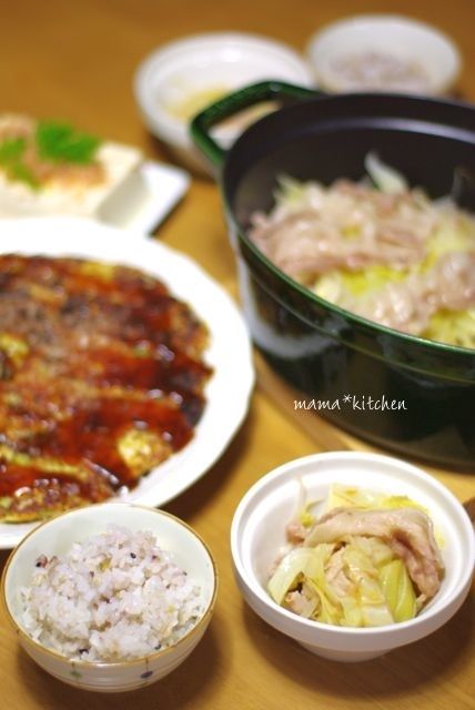 2014-4-25 09:11:25 豚肉と春キャベツのストウブ蒸し、とろろ焼き。 おはようございます^^久しぶりにストウブを使って♡野菜蒸し。春キャベツはざっくりと刻んで、もやしも加えました。いつもより蒸し時間を取り、やわらか~く仕上げポン酢でいただきました。近頃はまり過ぎの。。。とろろ焼き。ふわふわです^^ネギやキャベツが山盛りなの