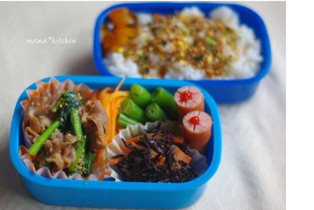 2014-4-9 09:11:12 春休み弁当 おはようございます^^給食ってほんとに有り難ーい!と感じる、早起きして作るお弁当。。今回も、写真撮ってないものもあるけど色々作ったな~肉野菜炒め弁当。次のは、豚ステーキ弁当。切り干し大根煮は、自家製冷食~!まだ凍ってますね~具沢山みそ汁付き。春菊と豚肉の