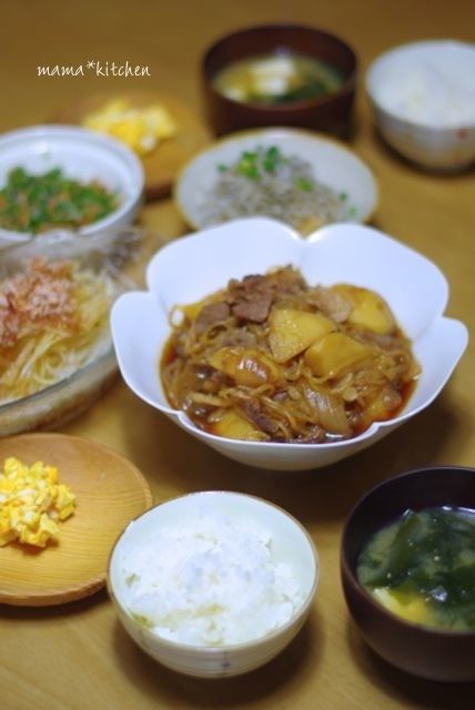 2014-4-1 09:11:57 肉じゃがでお夕飯♪ デザートは、チョコバナナムース♡ おはようございます^^今日から4月!!いよいよ。。。8%の生活がはじまるんだね~(;´∀`)肉じゃがのお夕飯。久しぶりに肉じゃが作った。笑大根消費メニュー。葉を炒めたり、サラダにしたり、じゃこおろしにしたり。わかめのお味噌汁と、ごはん。うーん♡ごちそうさまで