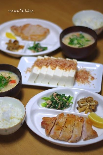 2014-4-3 09:11:14 豚ステーキと粕汁のお夕飯 おはようございます^^うちのごはんで、何が一番すき?と聞かれると、きっと上位に上がるであろう献立です。豚ステーキ(レモン添えで)きのこのバター醤油ソテー、小松菜のツナ和え。粕汁。。。そろそろラストスパート。゚(゚´Д`゚)゚。ごちそうさまでした~^^