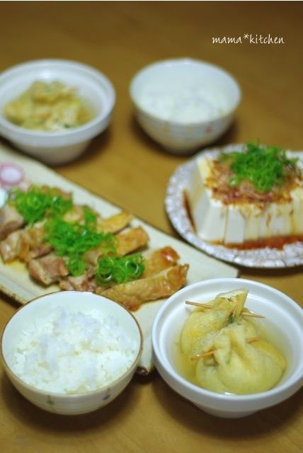 2014-6-5 09:11:01 チキンの塩ネギ焼きと、ねぎ袋のお夕飯。 おはようございます^^この前のヤミーな大阪グルメツアーにて。おでんで有名な「はなくじら」で気になってしょうがなかった、この巾着。やっぱり早速作ってみました!!なんかお揚げの薄さが違うなぁ。。葱は、九条葱で荒めに刻んで生姜もあんな感じで刻みました。美味しい