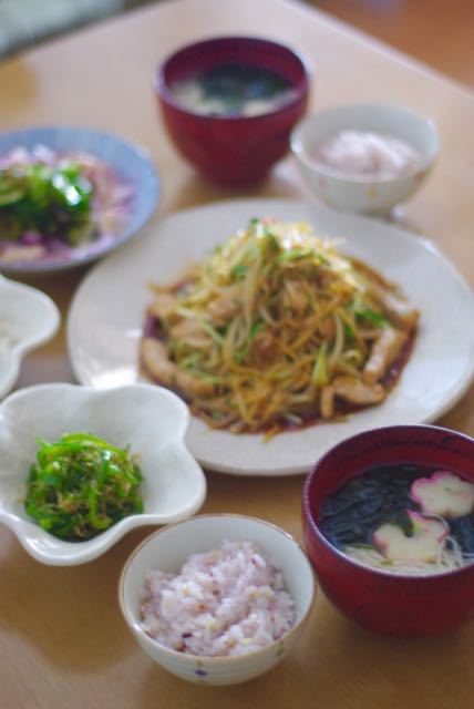 2015-6-17 07:00:00 豚キムチと作り置きいろいろで、お夕飯。キラキラの薔薇。 お天気が悪くてちょっと涼しいと、元気なワタシ。元気で気分がのっていると、やたら作り置きが増えます。そして、もんもんと考え込むことがあると、野菜の千切りが増えます(;´Д`)あ、良かった。。。元気みたい^^右上から、ピーマンとおかかの甘辛煮・丹波しめじの白ワ