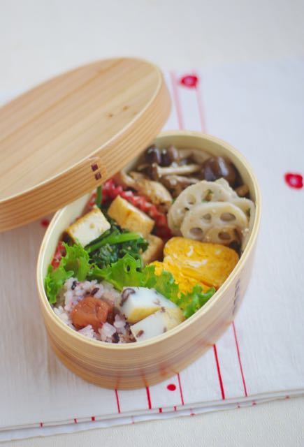 2015-12-11 08:37:58 お弁当、和と洋と洋っぽいのと和と。サンタさんに何願う? この前の、豚肉の味噌マヨチリを入れたお弁当。え・・・どこに?(って自分で思った)レンコン横、しめじの手前。*豚肉の味噌マヨチリ*しめじの塩麹炒め*カリカリ厚揚げとほうれん草の胡麻ぽん*だし巻き*蓮根パセリの塩麹炒め*お土産でいただいた練り物粕汁付き♡そし