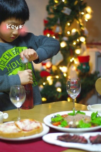 2015-12-25 08:00:00 クリスマスパーティー♪とサンタさんをおもてなし。 メリークリスマス~(。-∀-。)必死にシャンメリーを開けようとするKey。めちゃくちゃ怖がりのため、結局開けられず・・私が開けました。今朝は早起きで、サンタさんからのプレゼントを開ける子どもたち・・・!「あ~!お菓子か!!。。お菓子か。お菓子か!来てくれて、ありが