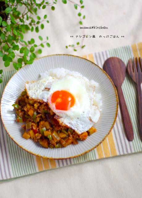 2016-8-19 08:00:31 夏野菜でエスニック♪ナシゴレン風のっけごはん*刺激をうける外ごはん お手軽に『ナシゴレン』を再現!! 夏野菜をたっぷり使い、ソースを作って、ごはんにのっけて食べる際に混ぜて食べます。(炒め合わせもしないw) ソースは冷凍も出来るので、食べたい時にいつでもナシゴレン風のっけごはんが楽しめますよ^^ 目玉焼