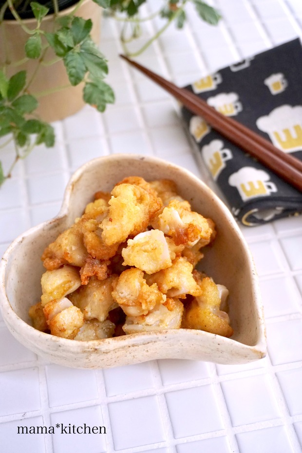 2018-10-17 08:00:19 唐揚げ粉がなくても大丈夫!「鶏なんこつのカレー唐揚げ」*簡単おつまみレシピ5選 おはようございます^^ついつい、ビールがなみなみ入った手ぬぐいを添えました。 朝から飲みたくなるレシピですが・・・これ、ただいま我が家で爆発的人気!笑コリコリの食感が楽しい鶏なんこつを使って♩カレー風味の唐揚げです〜!!ビールにめちゃくちゃ合う!(当たり