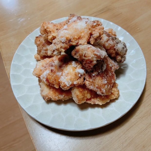 2021-6-11 08:30:26 鶏むね肉で!カリッとジューシー唐揚げ おはようございます♪なにやら近頃、アレルギー性鼻炎がひどいです。私も二人の子どもらも、みんな同じように反応。イネ科の雑草で、以前この時期ひっかかったので多分それだね。鼻がムズムズです・・・鶏むね肉で、あっさり!でも食べ応えのある唐揚げです。片栗粉で揚げる