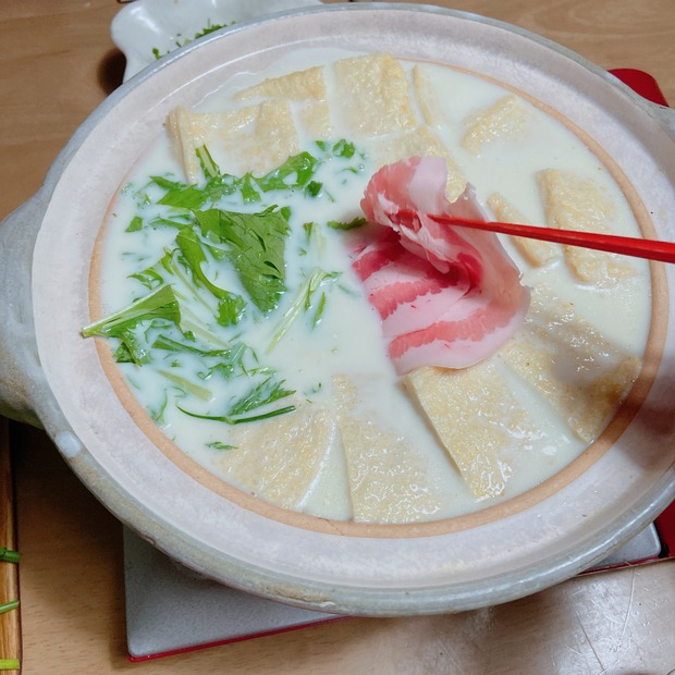 2021-9-22 08:00:21 豆乳鍋の週末ごはん おはようございます^^連休中は、ほぼうちにいたので。とにかく食べてましたね・・・笑餃子も作ったりしたけど、ブロガー魂どこいった?というくらい写真を撮ってなくて、今見返しててびっくりしてるんだけど。豆乳鍋の写真はあったので、載せておきます。涼しくなってきた