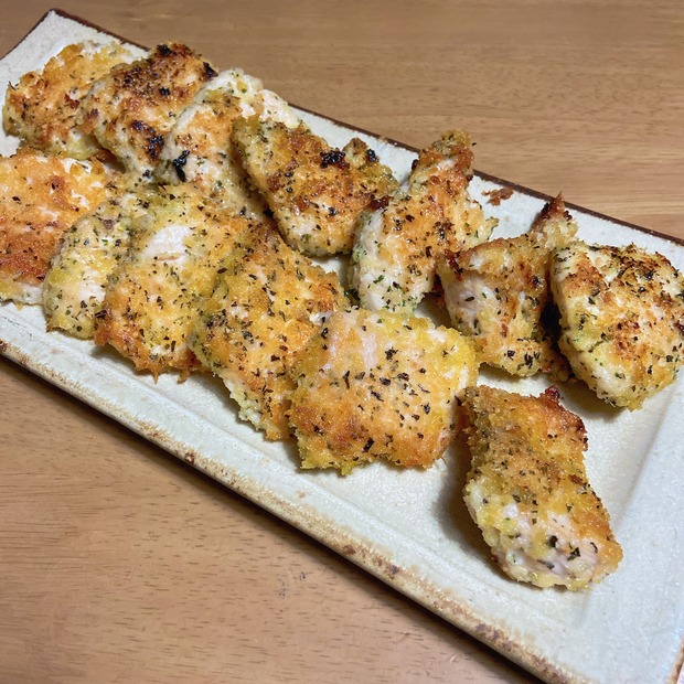 2023-1-24 08:00:13 鶏むね肉の香草パン粉焼き おはようございます〜ヘルシーな鶏むね肉。ピカタや唐揚げも美味しいけど、近頃この香草パン粉にハマり中。卵や小麦粉も使わないパン粉焼きは、なんて言っても手軽!!面倒じゃないので、是非^^ 鶏むね肉の香草パン粉焼き<材料> 2~3人分鶏むね肉・・・1枚塩・・・ひ