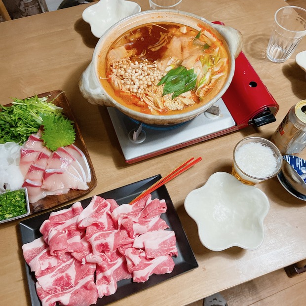 2023-1-10 08:00:18 魚介のキムチ鍋 おはようございます〜右下に、私の可愛すぎる靴下が写り込んでいるという・・・気にしない昨日は成人式でしたね。新成人になられた皆様、おめでとうございます〜!連休中は、春高バレーや高校サッカー選手権など、応援に明け暮れておりました・・・高校生が必死でプレイする
