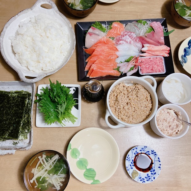 2023-2-7 08:00:31 節分の日の夜ごはん おはようございます〜2月3日節分の日の夜ごはんです。見ての通りの、手巻き寿司!巻き寿司やめて、手巻き寿司にしました。 今年の方角は・・・南南東。巻き寿司と違い、楽勝で食べきれるサイズ!の手巻き寿司でした!満足満足、ごちそうさまでした!豆まきは、声かけだけし