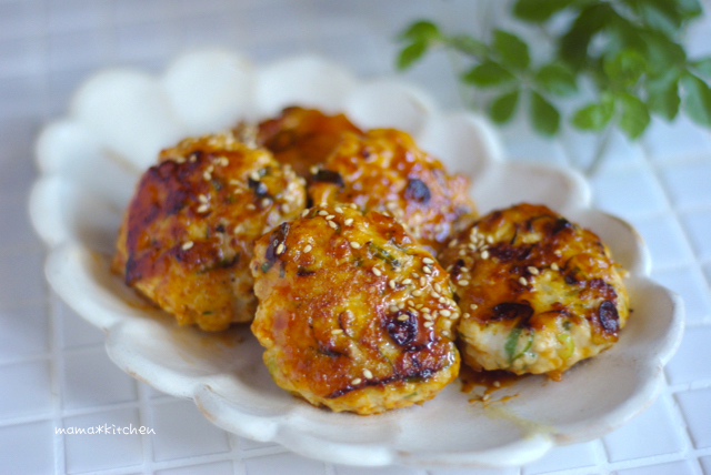 お豆腐は水切りもせず、混ぜ込みます。タネに加える片栗粉が水分をとどめてくれるので、水っぽくなりません。