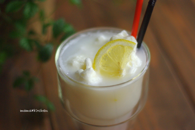 爽やかなドリンクの完成〜!レモンを添えて、更にスッキリ!!