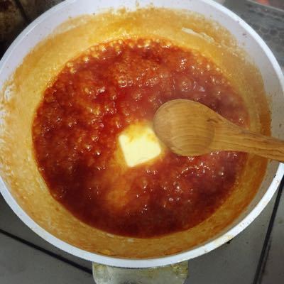 ④180度のオーブンで40分焼く。粗熱が取れたら、余分な肉汁をフライパンに移し、aの材料を加えて強火で煮詰め、ソースを作る。最後にバターを加えて火を消す。