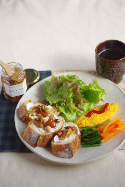 クリームチーズとナッツ&ハニーのバゲットでおはようございます(*∀*)