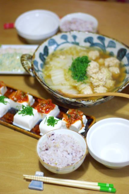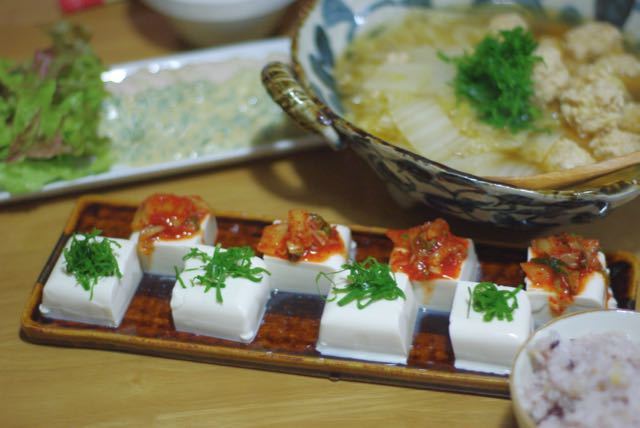 お豆腐とか、作り置きの鶏ハムなど。簡単に済ませてごめん。