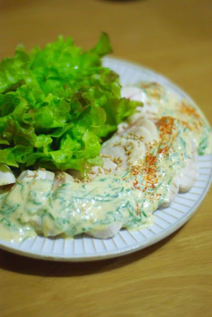 Keyは、これに一味をかけてレタスで鶏ハムと一緒に包んで、もりもりたべておりました。