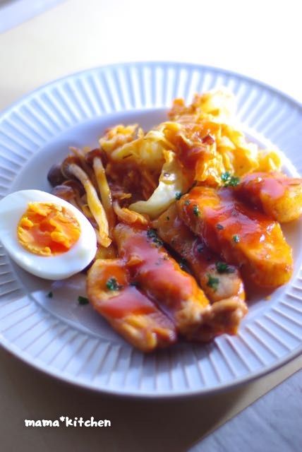キャベツやしめじ、おまけのゆで卵が嬉しい具沢山な一皿です♪