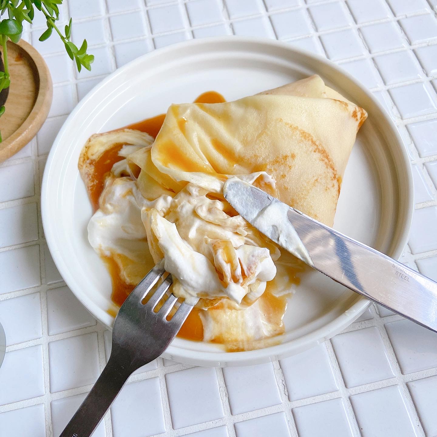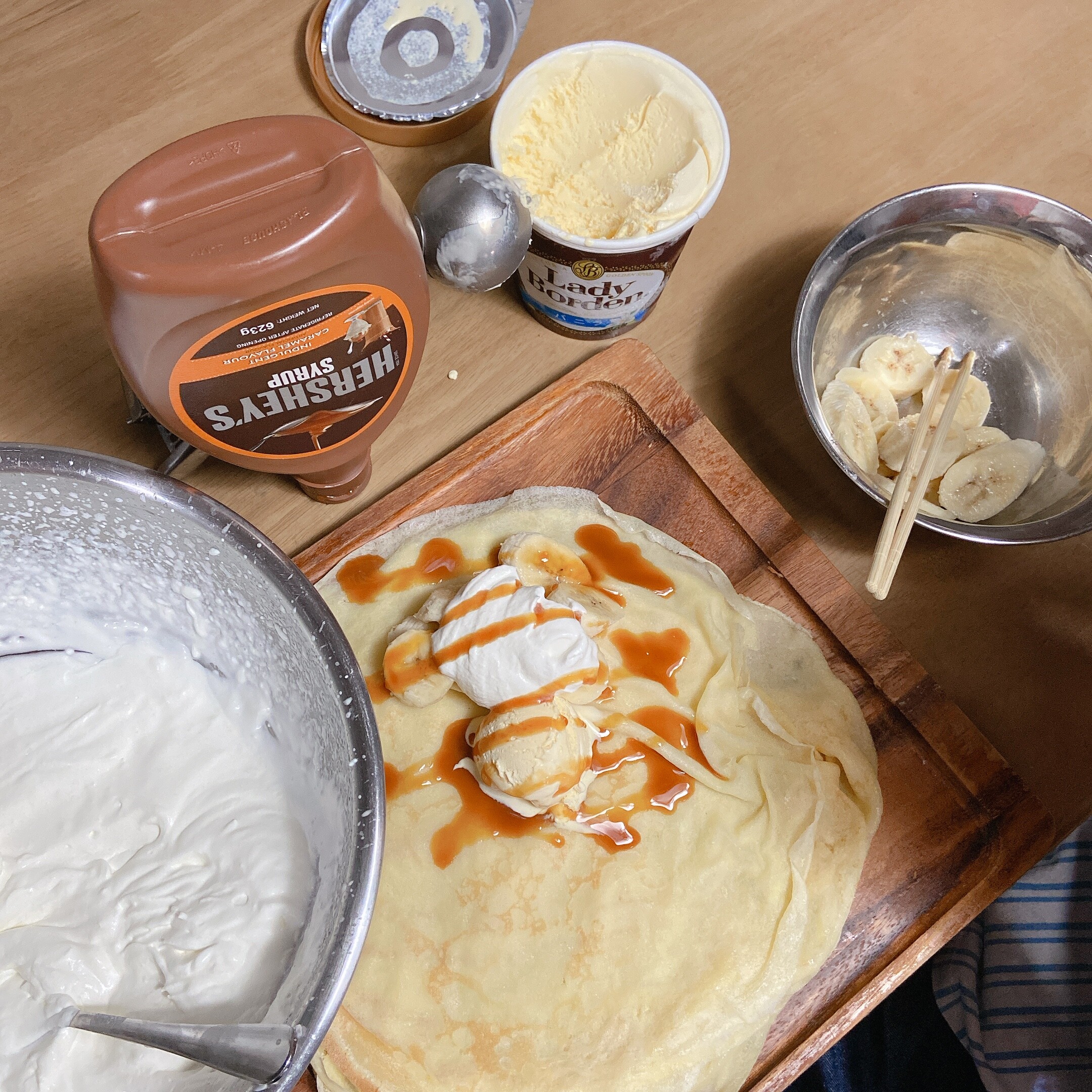 フライパンにバターを引いて、生地を薄く焼いたら、あとは好きに盛り付ける!