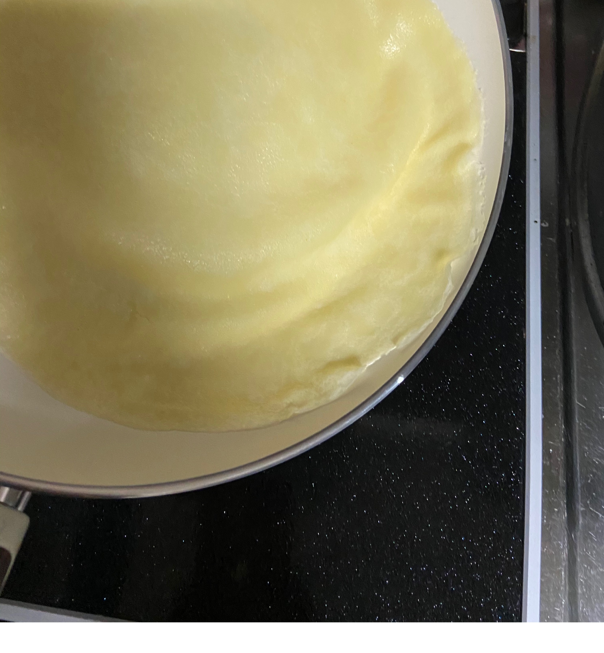 しばらくすると、なんと・・・フライパンを傾けるとスルスル〜と生地が滑ります!