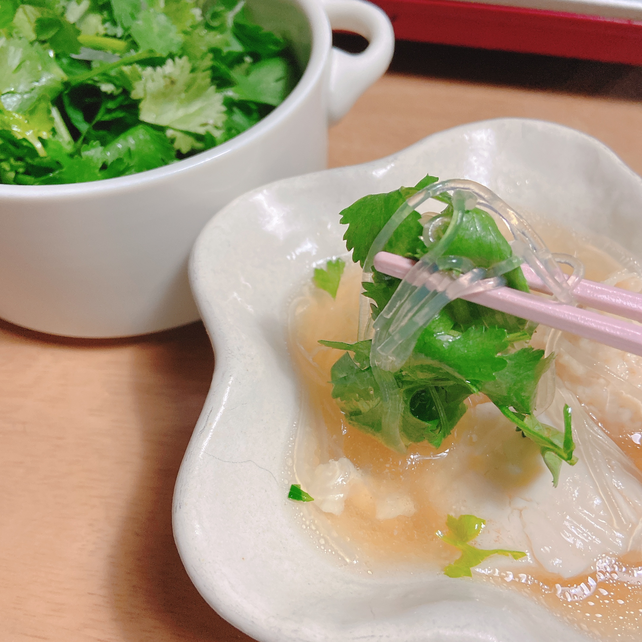 この前、大好きなパクチーをたくさんいただいて。春菊やセリみたいに、お鍋でササッと火を通していただいたらどんなに美味しいことか・・・!めちゃ大量消費するんちゃうの、一人で。と一瞬考えたのですが、パクチーが苦手な家族も食べる同じ鍋で、そんな暴挙が許されるのであろうか・・?