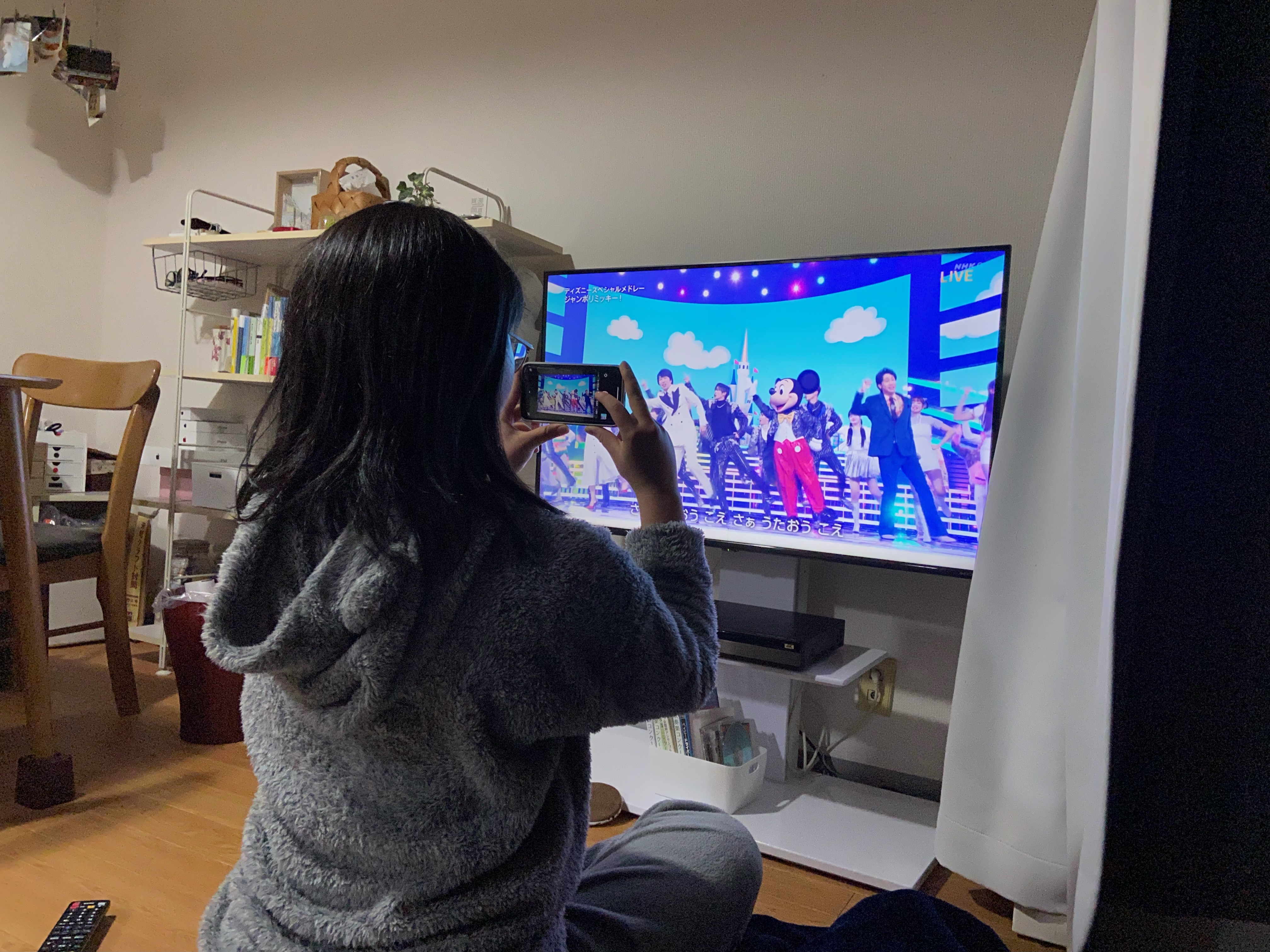 ずっと静かに笑いながら、TVをスマホで撮影していた・・・・