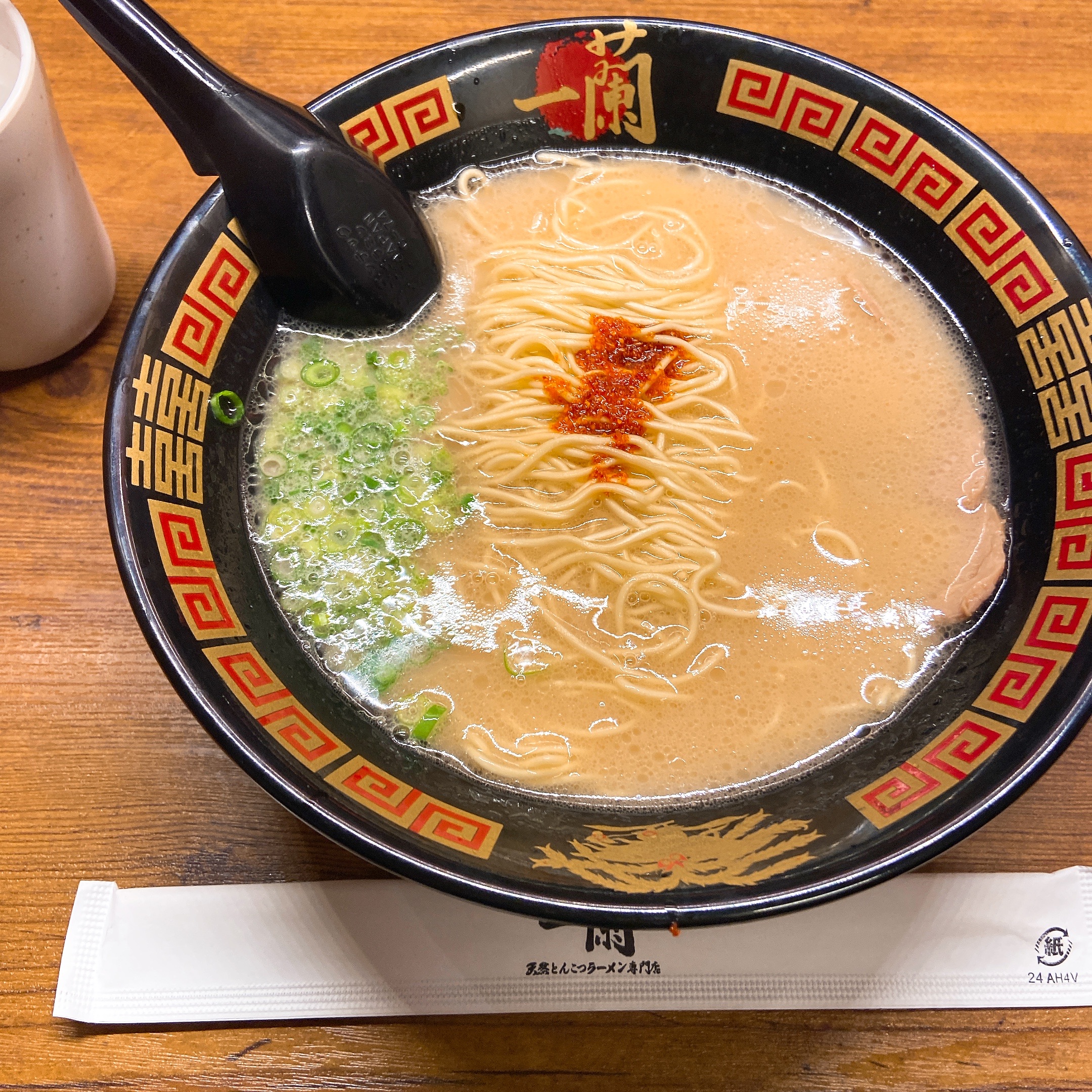 ちょっと前に息子の学校へ行くことがあって、その帰り一緒に帰ることができたので、ラーメン食べたいなーって話になり、良く友達と行くらしい一蘭へ連れてってもらいました。