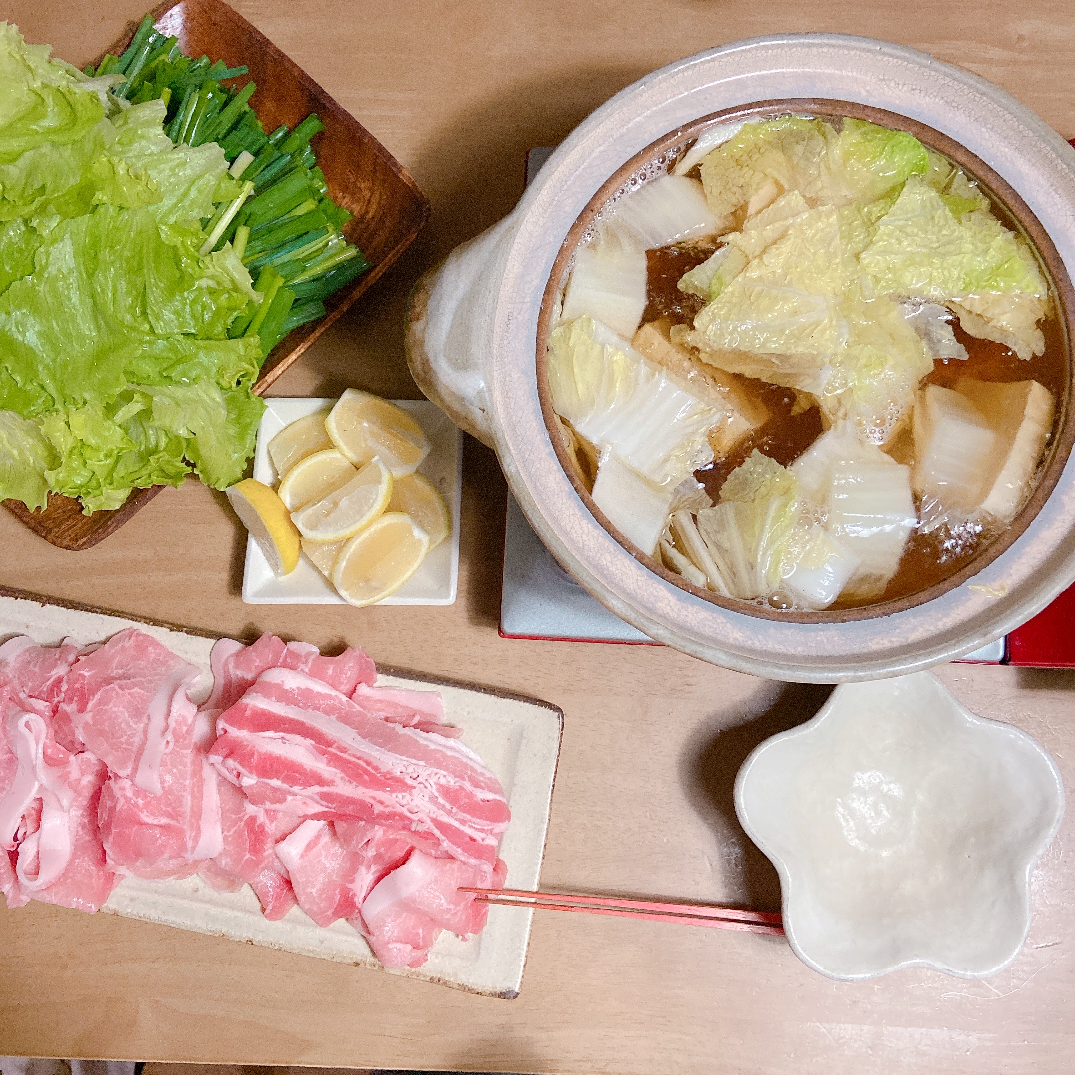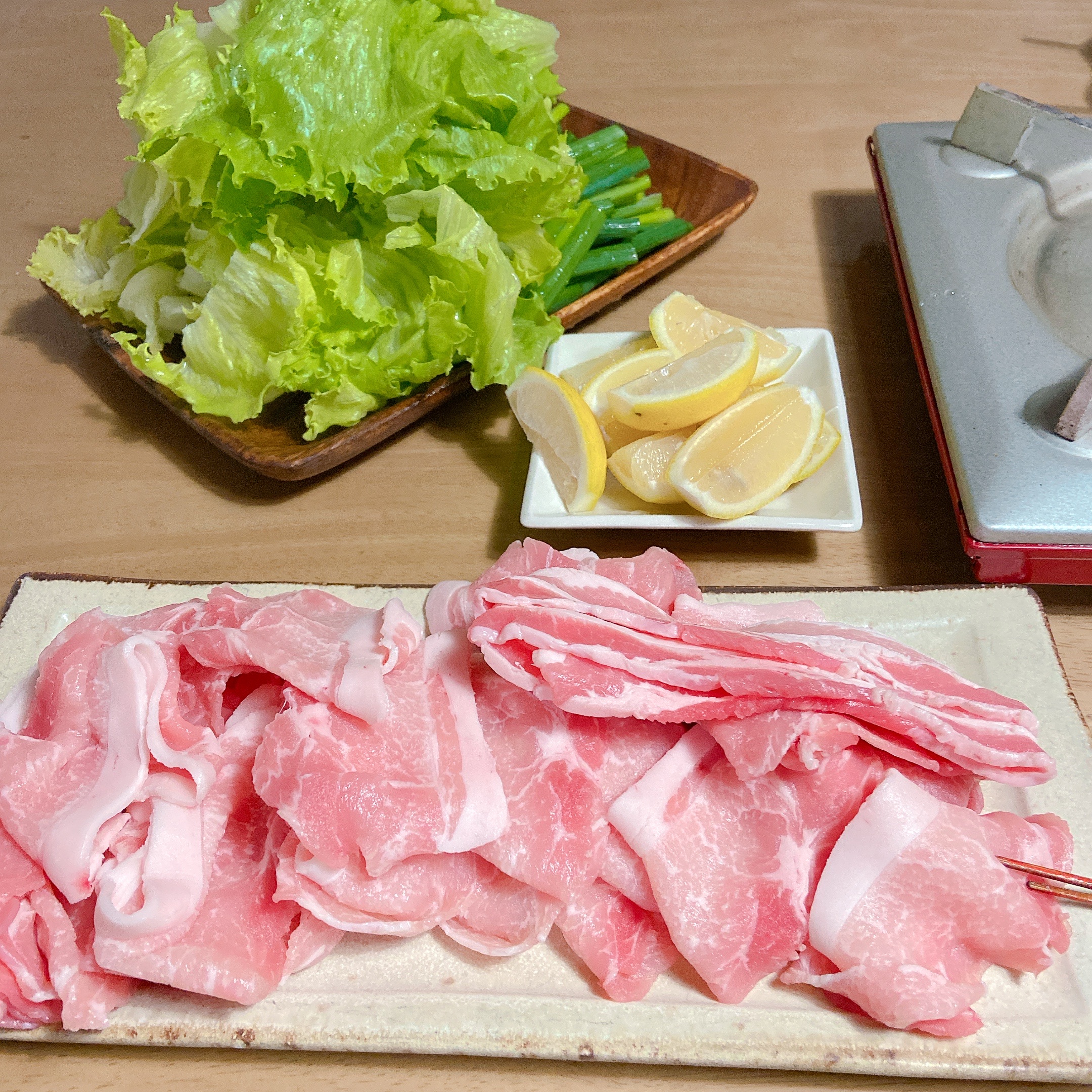 豚しゃぶでレタスを包んで、レモンを絞って!